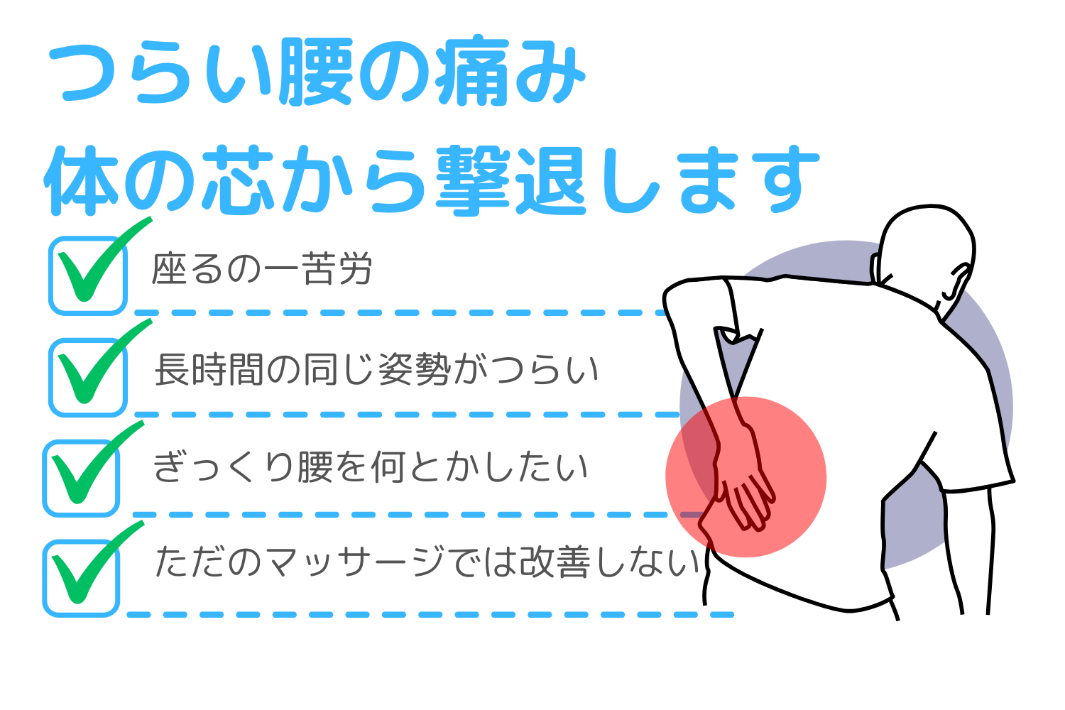 ✅ 腰痛がなかなか良くならず、根本的に改善したい人